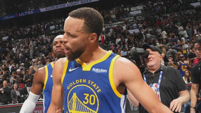 你不會意外庫里的超遠和撤步三分,也相信他反復借掩護從縫隙中找到三分空間的能力。他能軍訓文班,最簡單的辦法是有無球的單擋掩護抬手就扔。馬刺這兩場追防庫里的無球掩護都賠上過三分犯規(guī),這是他出手自信的獎勵。但三分不能解決全部問題,庫里也從來不只靠三分吃飯。馬刺會夾擊他,他不能把這類回合完全交給順下處理4打3的隊友——有時候,庫里自己硬打還要好過隊友4打3。